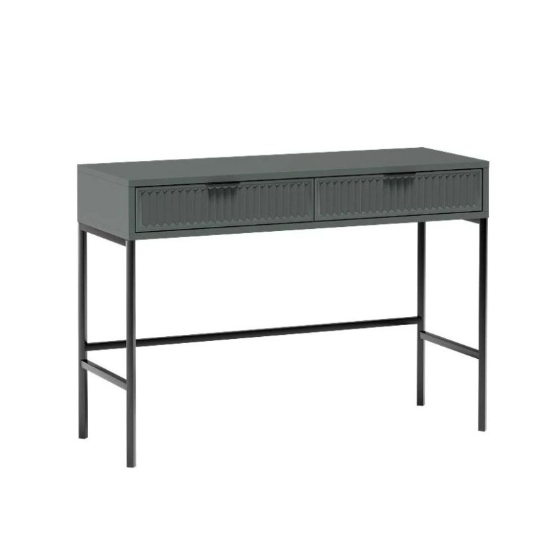 Nowoczesna konsola/toaletka to funkcjonalny mebel, który sprawdzi się w przedpokoju, sypialni czy salonie. Wyposażona w dwie szerokie szuflady, pomieści kosmetyki, klucze i drobne akcesoria. Dostępna w trzech modnych kolorach – cashmere, indigo i green stone – zachwyca eleganckim designem i wszechstronnym zastosowaniem. Idealna zarówno do minimalistycznych, jak i nowoczesnych wnętrz.