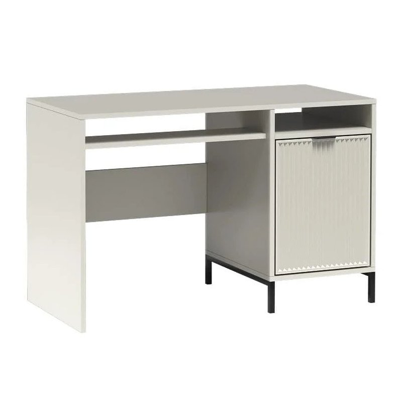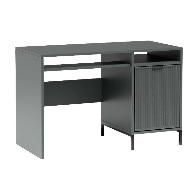Nowoczesne biurko w trzech wariantach kolorystycznych – cashmere, indigo oraz green stone. To funkcjonalny i stylowy mebel, który świetnie sprawdzi się zarówno w pokoju młodzieżowym, jak i w domowym biurze. Wyposażone zostało w praktyczną, wysuwaną półkę na klawiaturę, a także zamykaną szafkę po prawej stronie. Wewnątrz szafki znajduje się dodatkowa półka, dzieląca przestrzeń na dwie części, co ułatwia przechowywanie dokumentów, książek czy akcesoriów biurowych. Biurko łączy wygodę użytkowania z nowoczesnym designem, tworząc komfortowe miejsce do nauki i pracy.