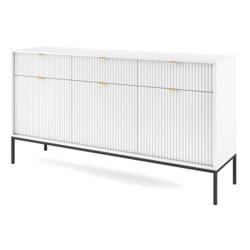 Solidne materiały, precyzyjne wykonanie i subtelne detale, takie jak złote uchwyty czy smukłe nóżki, sprawiają, że meble prezentują się elegancko i ponadczasowo.