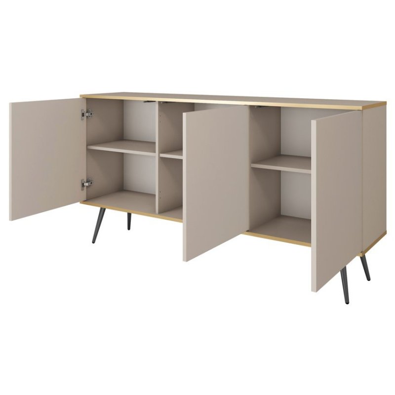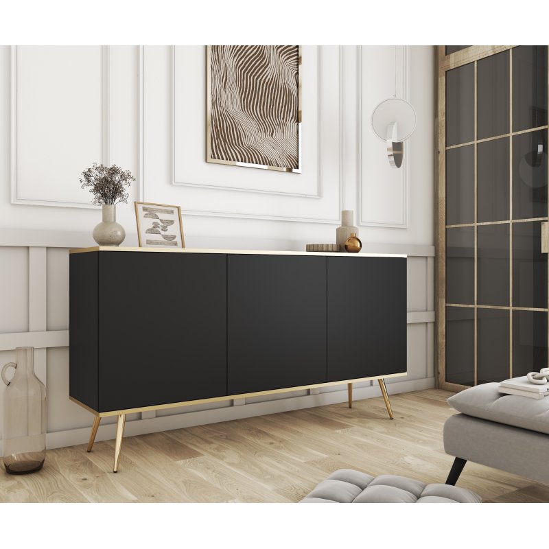 Ta kolekcja mebli to połączenie nowoczesnego designu z subtelnym stylem glamour. Świetnie sprawdzi się zarówno w sypialni, jak i w eleganckim salonie czy holu. Meble prezentują się lekko dzięki smukłym nogom i delikatnym liniom, a złote akcenty dodają wnętrzu prestiżu.