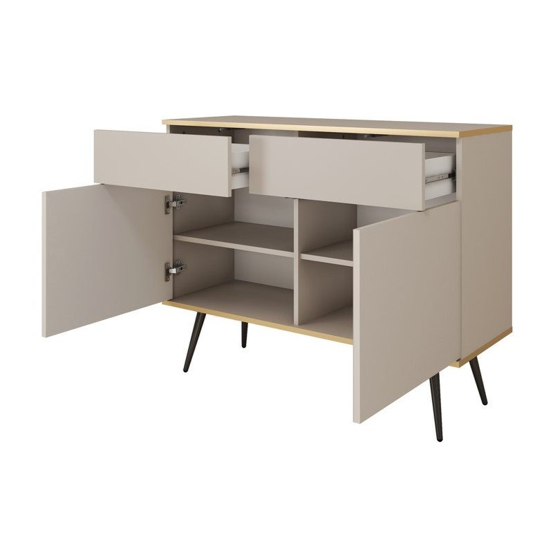 Komoda Dwudrzwiowa na Nóżkach Beż Czarna Biała Glami
