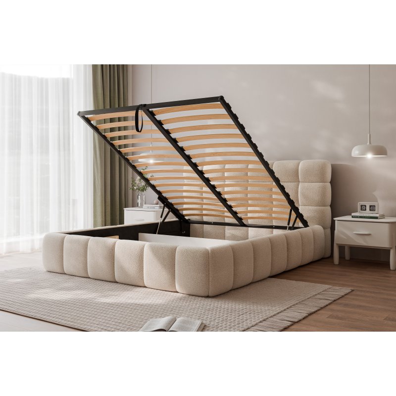 Łóżko posiada pojemnik na pościel pod całą powierzchnią spania, otwierany do góry za pomocą unoszonego stelaża. Dzięki zastosowaniu sprężyn, unoszenie stelaża jest lekkie i wygodne.