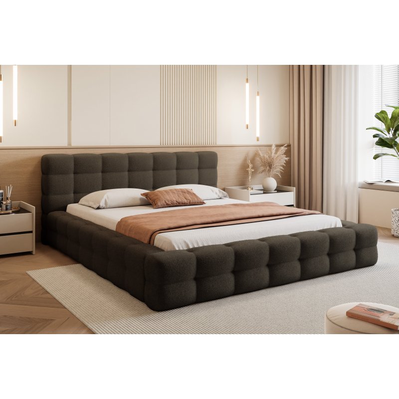 Model wyróżnia się eleganckim, głęboko pikowanym wykończeniem, które otacza całą konstrukcję – zagłówek, boki oraz przód łóżka. Dzięki temu łóżko prezentuje się wyjątkowo okazale i stanowi centralny punkt każdej sypialni.